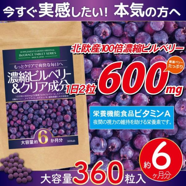 ブルーベリー サプリ ビルベリー ルテイン カシス 北欧産 高配合 大容量 100倍濃縮 約6ヶ月分 メグスリノキ アイブライト ポリフェノール 日本製