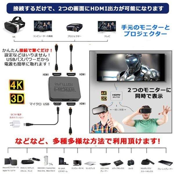 HDMI分配器 HDMI スプリッター 1入力2出力 2台 4K フルHD 3D 分配 同時出力 AV ブルーレイ ゲーム PS4 PC