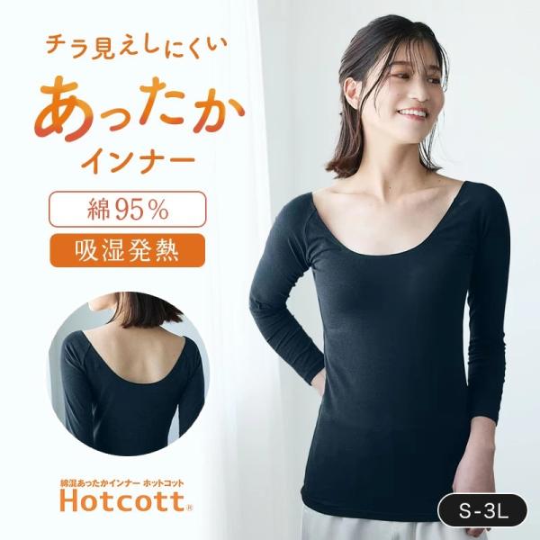 インナー レディース あったかインナー 9分丈 長袖 ワイドネック バックオープン 綿混 ホットコット 吸湿 発熱 保温 暖かい 長め丈 冷え対策