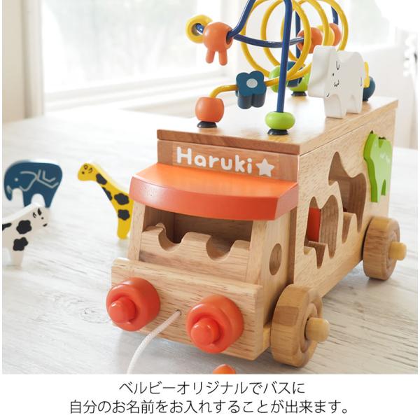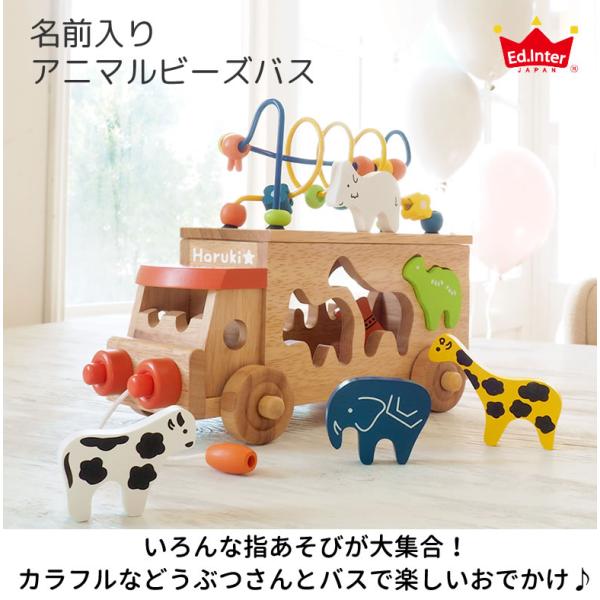 名前入りアニマルビーズバス 積み木 つみき 知育玩具 名入れ 出産祝い 100日祝い ハーフバースデー 1歳誕生日 ベビーギフト