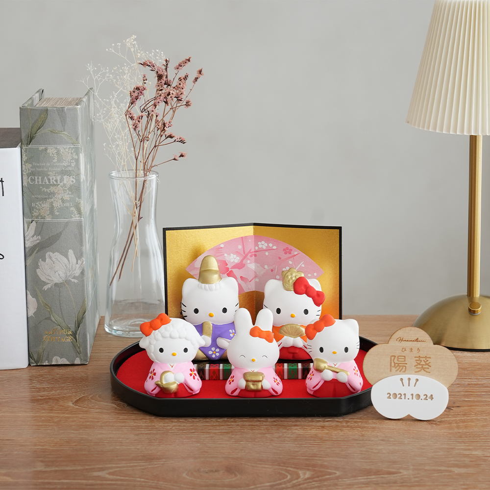 初節句 ひなまつり 雛人形 ハローキティとひなまつり 日本製 五人飾り コンパクト おしゃれ 人気 小さい 名入れ