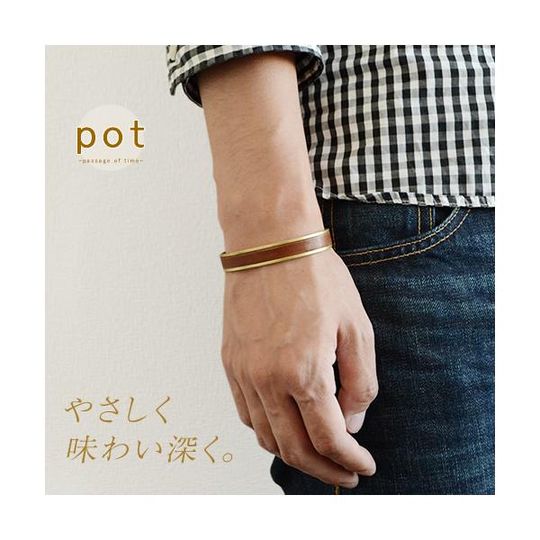 栃木レザー レザーブレスレット バングル メンズ レディース 本革 日本製 pot ポット 真鍮バングル シンプル アクセサリー プレゼント