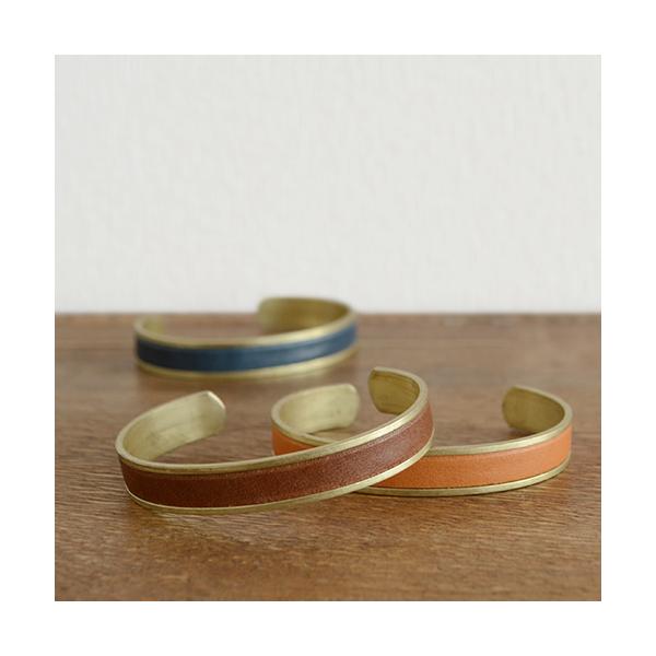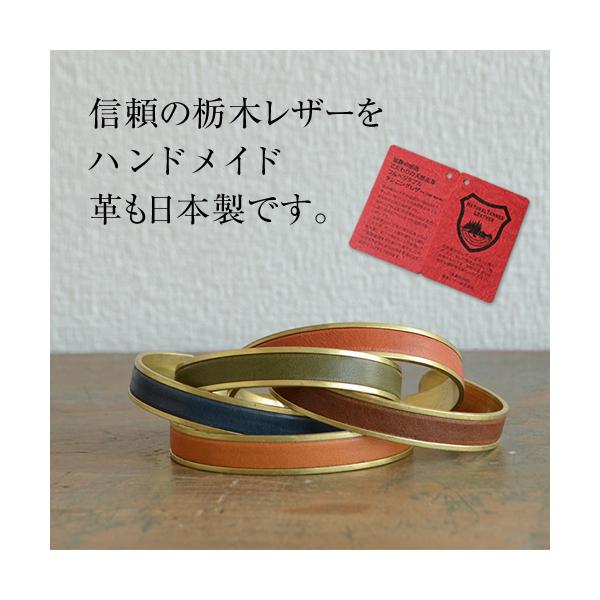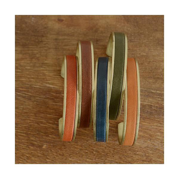 日本製、栃木レザーと真鍮の、おしゃれなバングル。
