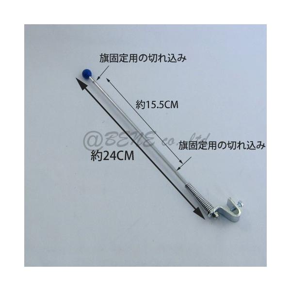 フラッグポール、 ベスパの場合、フロントフェンダーをこのポール下部のボルトで挟むように固定します。