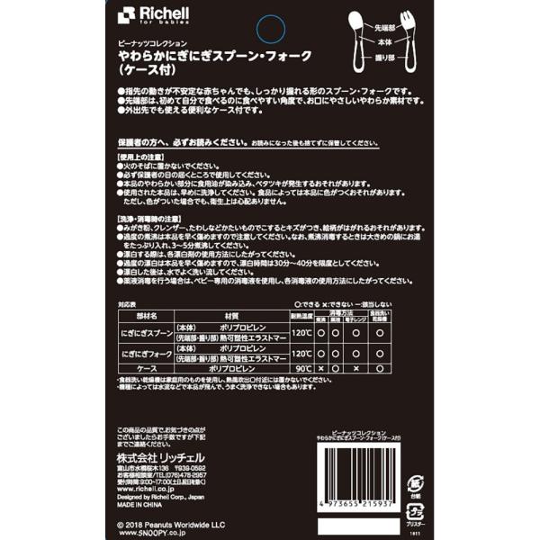 商品名:リッチェル ピーナッツ コレクション やわらかにぎにぎスプーン・フォーク(ケース付)