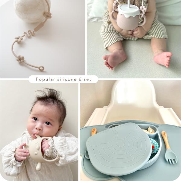 シリコン食器を集めた、出産祝いのセットです。