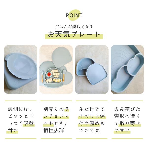 お天気プレート シリコン 食器 スプーン フォーク セット 離乳食 ベビー用食器 ひっくり返らない 吸盤付き ディッシュ プレート