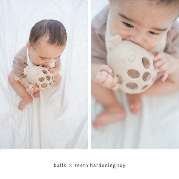 ・ 【チーズボールの形状・メリット】 しっかりしている素材だけど柔らかい、シリコンの特性を最大限活用した設計に。下部から音の出る鈴やハンカチを入れれば、さらにベビーの興味を惹くおもちゃに。