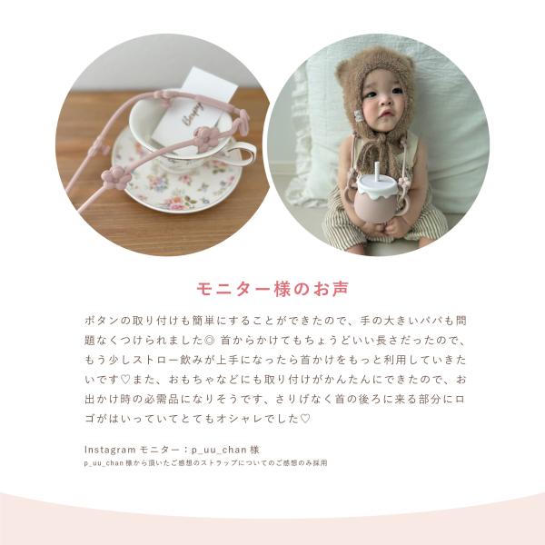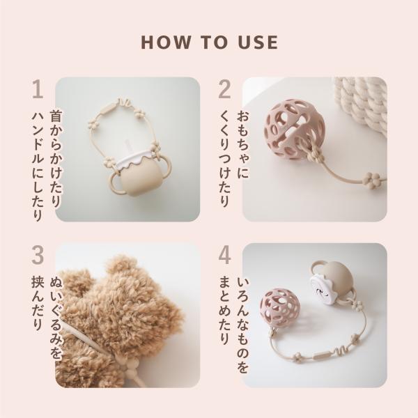 他にも歯固めやおもちゃ、ベビーカーにも取り付け可能です。
