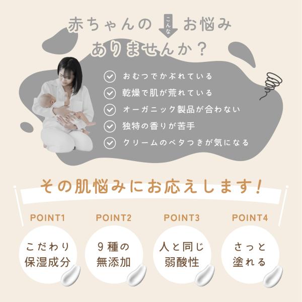 大切な赤ちゃんのお肌を、保湿・浸透します。