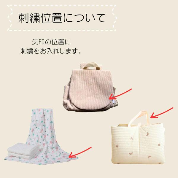 ●刺繍文字については英字のみの対応となります。ご注意下さい。(頭文字大文字、以降小文字)