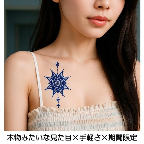 ワンポイントのおしゃれ、ファッションに使えるタトゥーシール。ハロウィン、音楽フェス、イベント、クラブ、海水浴などの際、ボディペイント感覚で楽しむことができます。