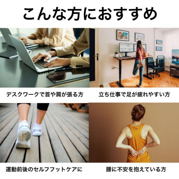 朝のストレッチ、仕事の合間のリフレッシュ、就寝前のリラックスなど、毎日のケアにご活用ください。