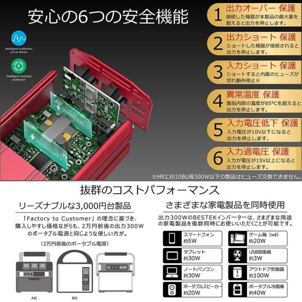 カーインバーター インバーター 300W シガーソケット充電器 12V AC2口 100V 車載コンセント USB2.1A2口 車中泊 MRI3010BU-E04 BESTEK