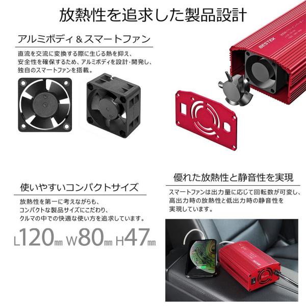 カーインバーター シガーソケット コンセント 150W: DC12VをAC100Vに変換 USB2ポート搭載 車載用インバーター 12V車専用 BT6500-BK BESTEK