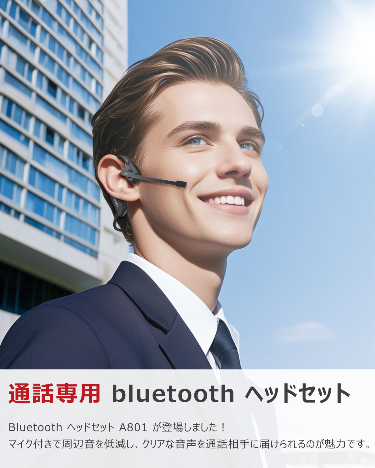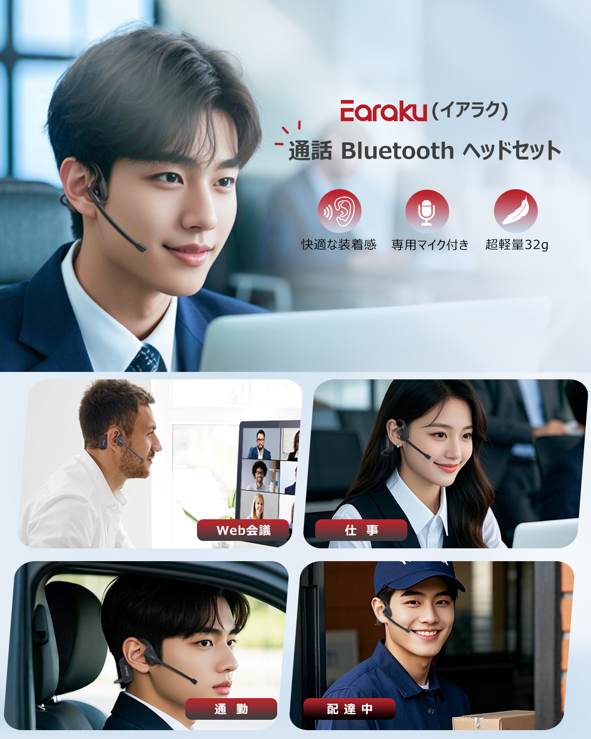 商品名:Bluetooth ワイヤレス ヘッドセット マイク付き 空気伝導イヤホン Bluetooth マイクミュート可 軽量32g 両耳 テレワーク