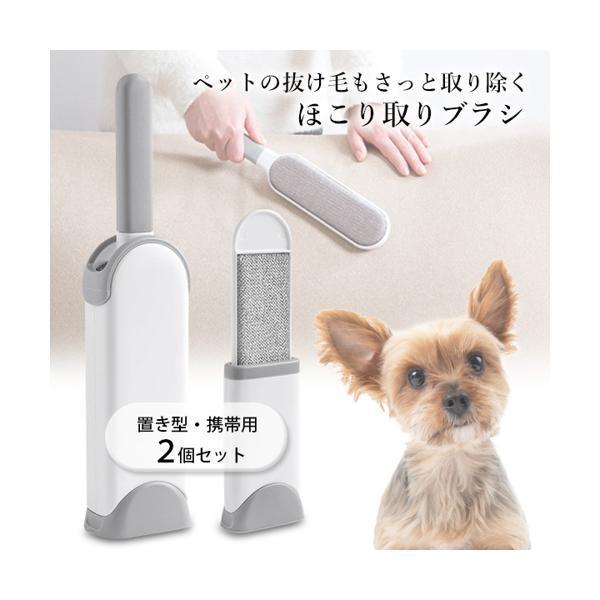 ほこり取りブラシ 大小2個セット ペット ブラシ 抜け毛ブラシ 洋服ブラシ 洋服 犬 猫 毛玉 グレー