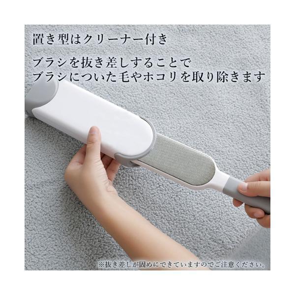 置き型にはクリーナーつき。ブラシを抜き差しすることで、ブラシについた毛やほこりを取り除き、集めます。