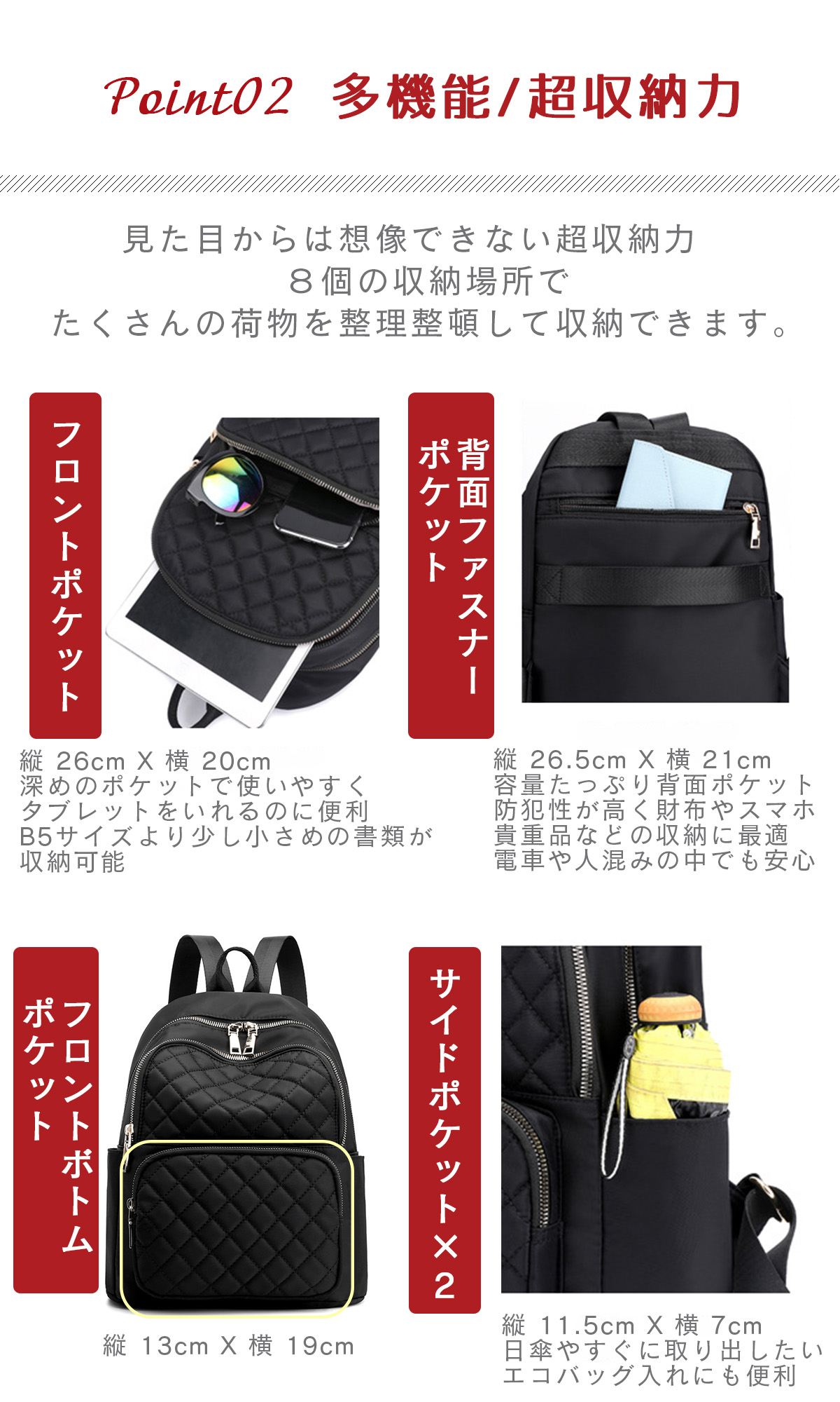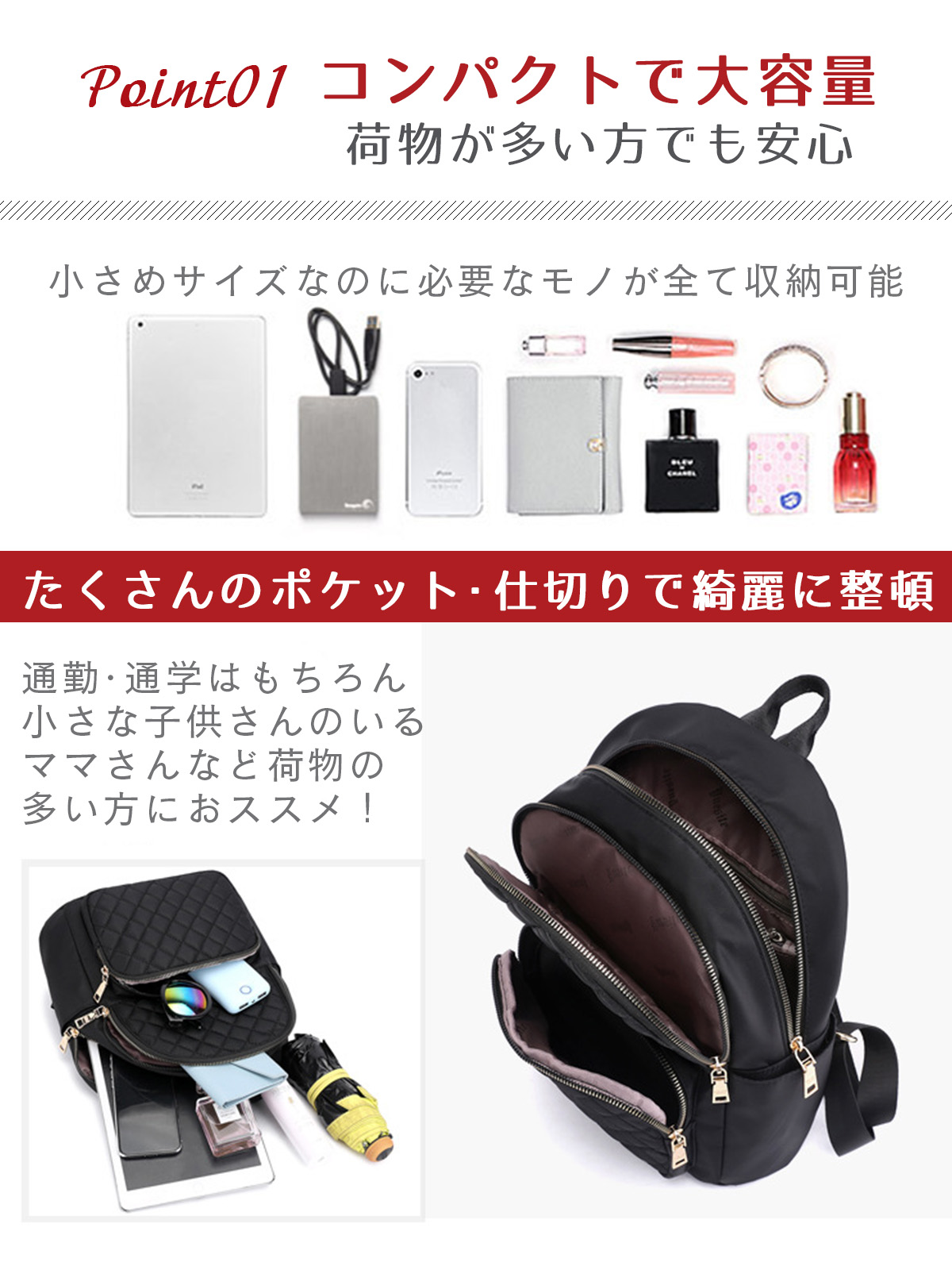 リュック レディース ママ 通勤 小さめ 軽い 撥水 コンパクト キルティング 防犯 ミニリュック 通学 かわいい デイパック リュックサック 黒 多機能 ビジネス