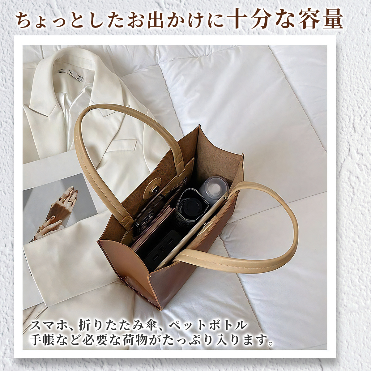 トートバッグ レディース 小さめ ミニトート A4 PUレザー 合皮 スクエア 軽量 マグネット 軽い ミニバッグ 自立 かわいい おしゃれ マチあり