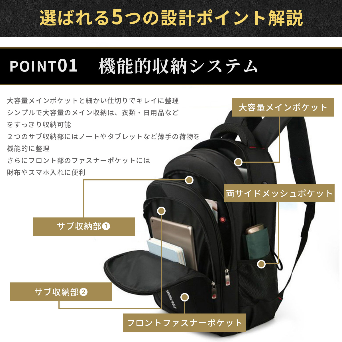 リュック メンズ 大容量 軽量 防水 撥水 防災 薄型 A4 サイズ ノートPC USB 通勤 通学 出張 旅行 バックパック ブラック 黒 PC ビジネスリュック ビジネスバッグ