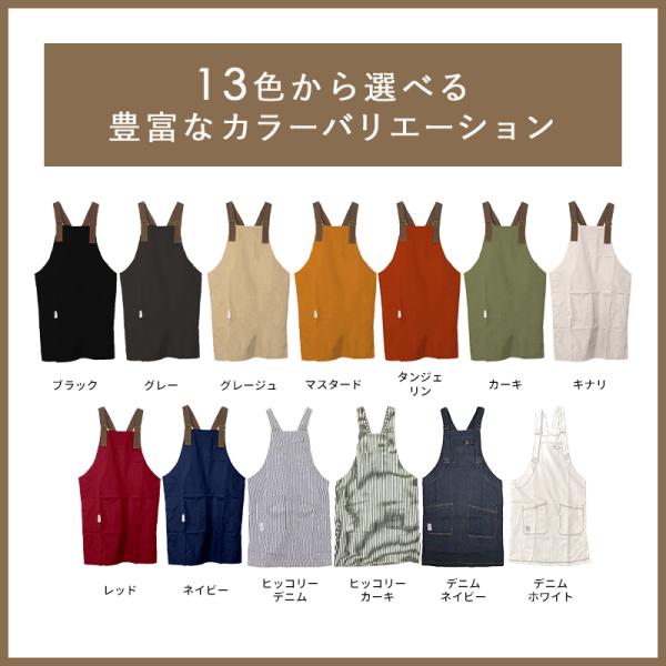 ブラック、グレー、グレージュ、マスタード、タンジェリン、カーキ、キナリ、レッド、ネイビー、ヒッコリーデニム、ヒッコリーカーキ、デニムネイビー、デニムホワイト