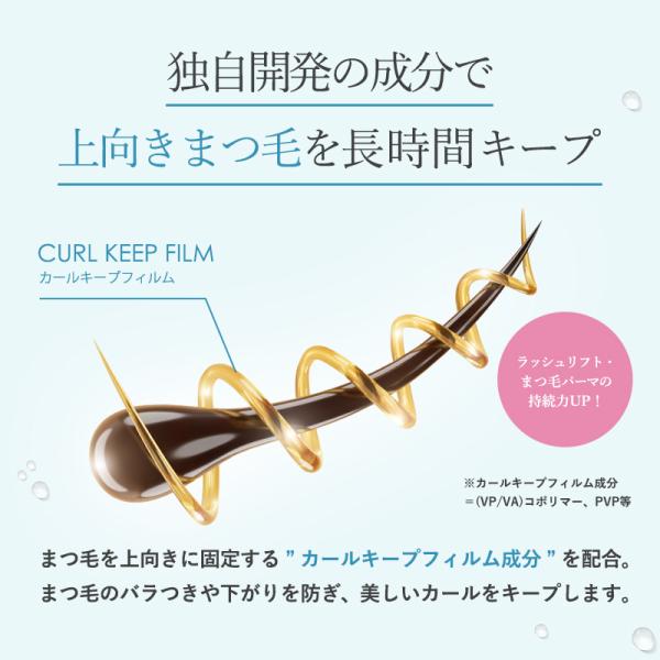 「カールキープフィルム」を形成し、バラつき・下がりを防ぎ、上向きまつ毛をキープ。