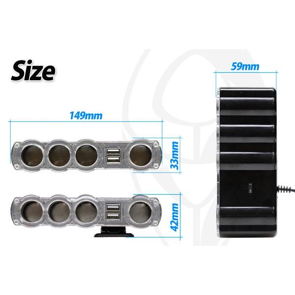 4連シガーソケット 2USB増設キット(シガーソケット増設キット)送料無料