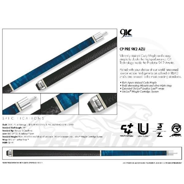 プレデター キュー 【 9K-2 AZURITE 】 314-3装備(シャフト変更可能)