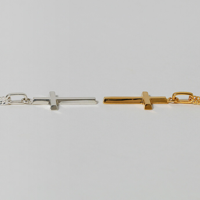 シルバー925のクロスと喜平チェーンがセットになったネックレス。クロスは側面を台形にすることで、小さく細めながらも存在感のあるデザインに。ペンダントとのバランスを重視した極細の喜平チェーンで高級感を出しつつこなれた印象を演出。胸元にさり気なく輝くシルバーアクセサリーは、上品かつクール自分の格を上げてくれる。