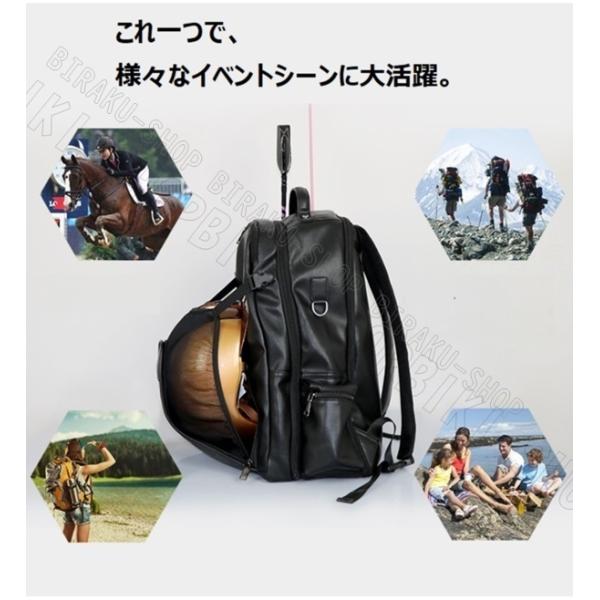 レザーバッグ 乗馬用リュックサック レザーリュックサック 乗馬バッグ 送料無料 乗馬ヘルメット収納可 バッグ 乗馬カバン 乗馬用バッグ 黒 収納