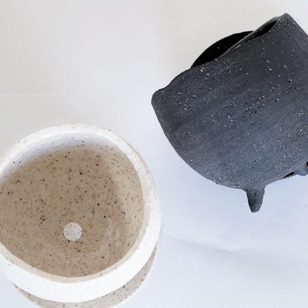 ざら肌テクスチャーに3本脚がついたユニークな鉢
