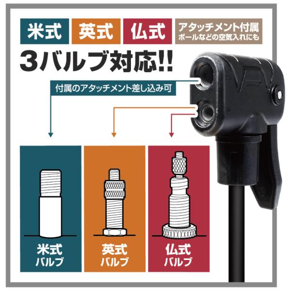 空気入れ 自転車 足踏み式 エアーポンプ サイクルポンプ フット式 仏式 英式 米式 ロードバイク マウンテンバイク ボール プール 浮き輪 小型 軽量