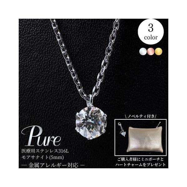 モアサナイト ネックレス ステンレス つけっぱなし ステンレスネックレス 金属アレルギー対応 錆びないネックレス レディース 一粒 ストーン 4mm