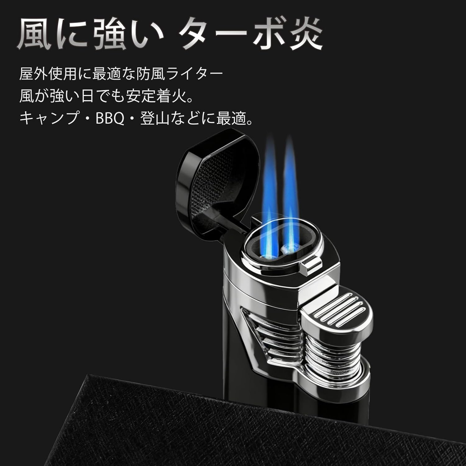 【風に強い】2本のパワフルなジェットバーナーが特長のターボライターが想像もつかない強力なターボ炎があります。しかも、点火らくらく!風が強い屋外でも簡単に着火することができます。