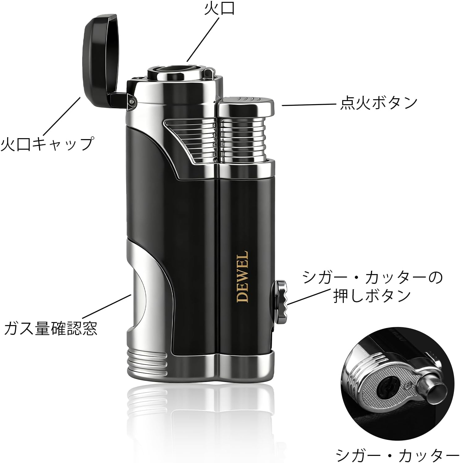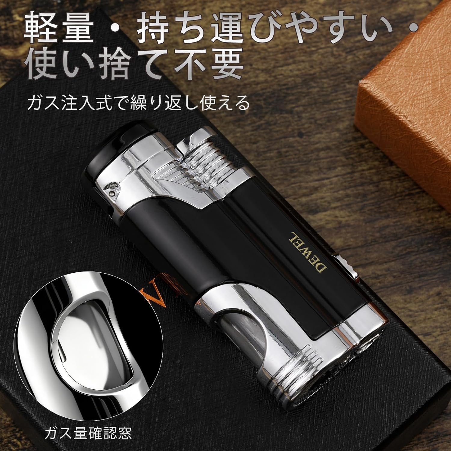 [7-8日限定10倍P付] ターボライター ジェットライター ガス注入式 ターボ炎 DEWEL 耐風バーナー (オイル無し) 父の日 男性プレゼント おしゃれ アウトドア 新色