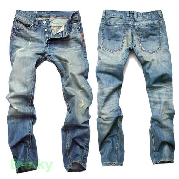 デニムパンツ メンズ Gパン ジーンズ ストレート ウォッシュ ダメージ ユーズド