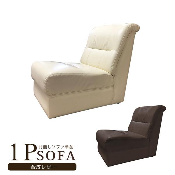 ソファ ソファー 1人掛け 肘無しソファ 合皮レザー PVC コンパクト シンプル モダン ダークブラウン アイボリー