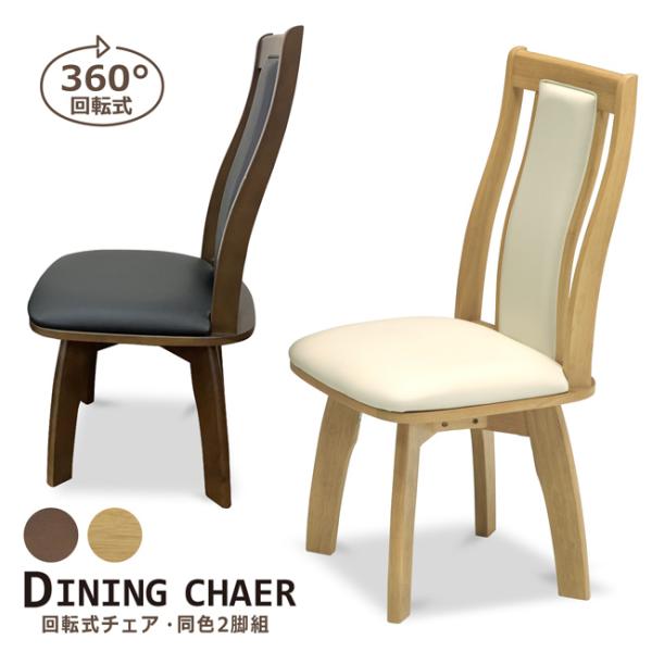 ダイニングチェア 回転チェア 2脚セット ハイバック 木製 ラバーウッド 食卓椅子 座面 360度回転式 回転椅子 座面PVC レザー モダン 北欧 肘無し 組立品