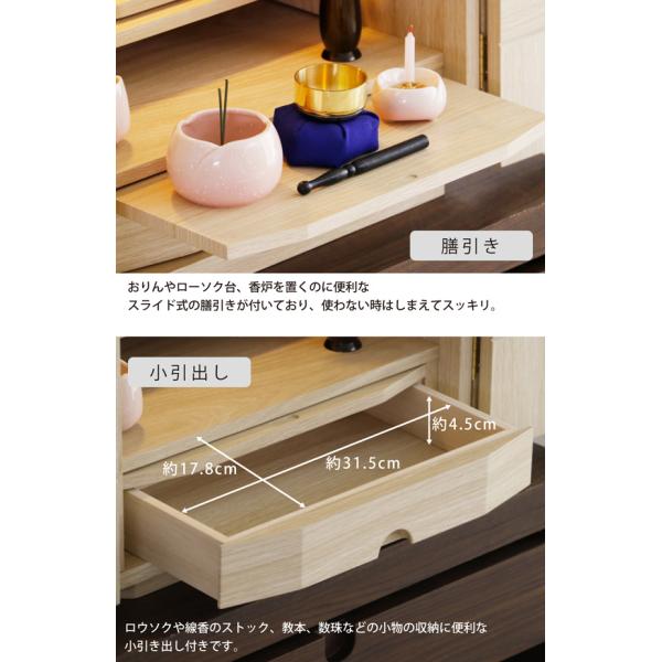 仏壇 ミニ仏壇 16号 木製 コンパクト LEDライト 膳引き 引出し 上置き仏壇 モダン ナチュラル ウォールナット