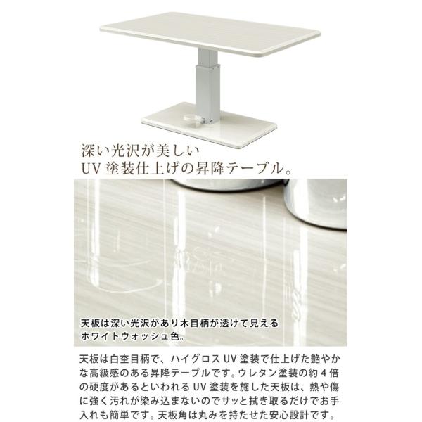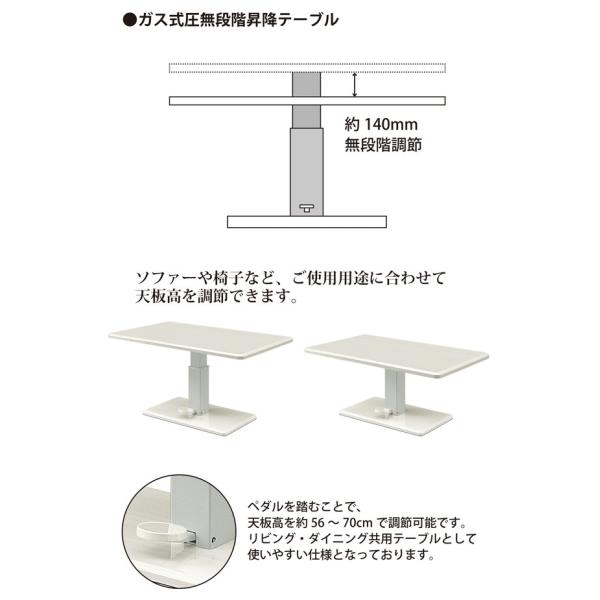 【欠品3月中旬入荷】 ダイニングテーブル 幅135 昇降テーブル UV塗装 光沢 昇降機能付き ガス圧式 無段階 ホワイト木目 おしゃれ 新生活