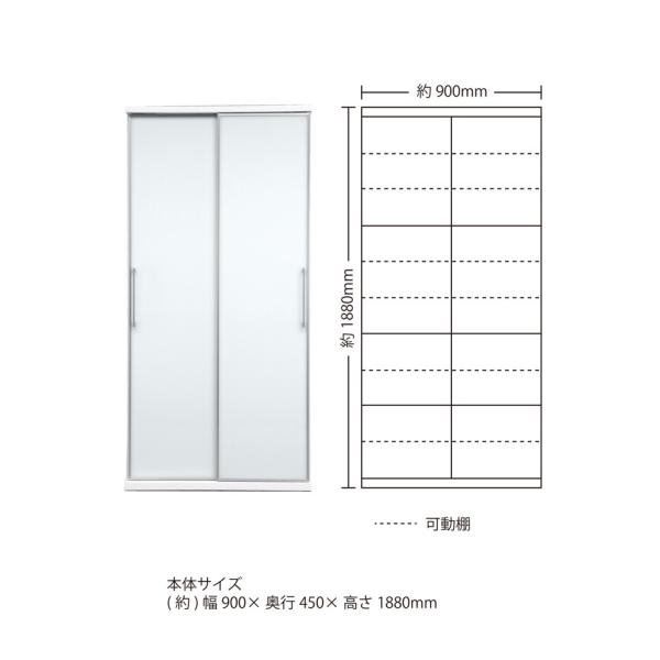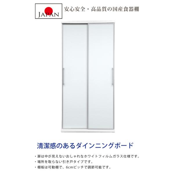 食器棚 幅90 奥行45 高さ188 ダイニングボード 耐震ダボ ホワイトガラス キッチン収納 食器収納 引き戸 スライド扉 日本製 シンプル 完組