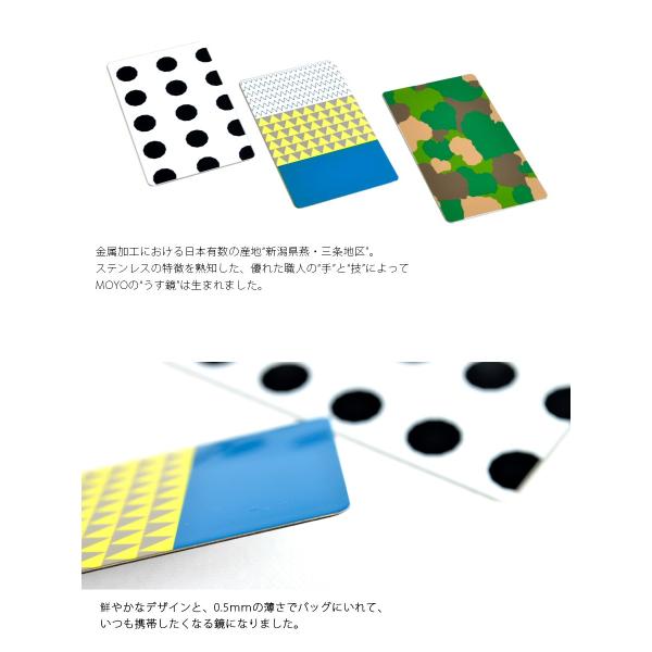 MOYO モヨウ うす鏡 鏡 コンパクトミラー カードサイズ ハンドミラー カードミラー コンパクト ミラー 手鏡 送別会 プチギフト ギフト 女性 退職 お礼 ラッピング 無料 ラッピング無料 1000円 ぽっきり ポッキリ 割れない コンパクト手鏡 カード 収納 お出かけ お出掛け 旅行 通勤 エチケット ブランド 日用品 ノベルティ 贈り物 お配り お返し 結婚式 結婚 披露宴 ちょっとした 可愛い かわいい カワイイ お洒落 オシャレ オシャレ カラフル ステンレス 割れない 人気 おすすめ 携帯 携帯用 日本製 Made in Japan レディース 通販 01_KURODAMA 03_ASHIATO 09_SUIHEISAN 11_KOMADO 15_TSUBAKI 29_HANAMOKO 34_GREENHEART 38_DELTA 46_SLOPEE 雑貨 雑貨アイテム カードミラー コンパクト アソート ドット チェック 迷彩 ボーダー 花 フラワー 手鏡 ミニ プチ ミラー 傷つきにくい 強化ステンレス プレゼント ギフト 日用雑貨 粗品 ノベルティ お返し お礼 贈り物 実用的 お返し お礼 もよう 誕生日プレゼント お誕生日 披露宴 結婚式 転勤 移動 退職 歓迎会 送別会 2次会 景品 新潟 三条