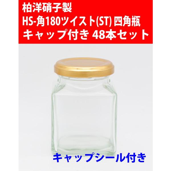 ジャム瓶 HS-角180ツイスト(ST) 四角瓶 キャップ・キャップシール付き 48本セット 広口びん ガラスびん 柏洋硝子製