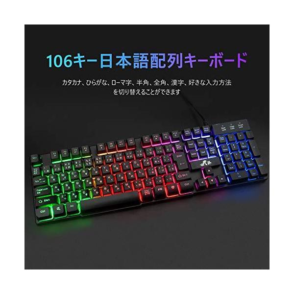 【有線キーボード】106キー日本語配列で日本語レイアウトでメカニカル式な感覚を提供しています。オフィス/仕事/ゲームなどのシーンに使えます。