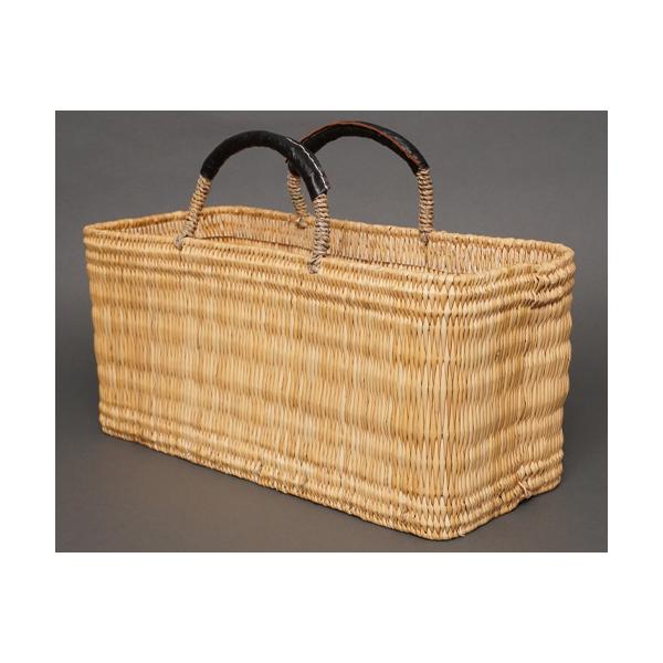 アフリカ モロッコ スクエア マルシェ バスケット ブラックレザーハンドル (Lサイズ) アフリカンバスケット