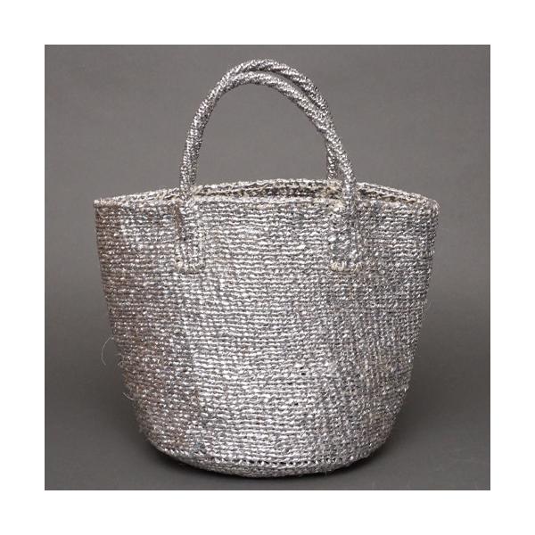 アフリカ ケニア サイザルバッグ プラスチック 9インチ Mサイズ シルバー アフリカ雑貨 トートバッグ