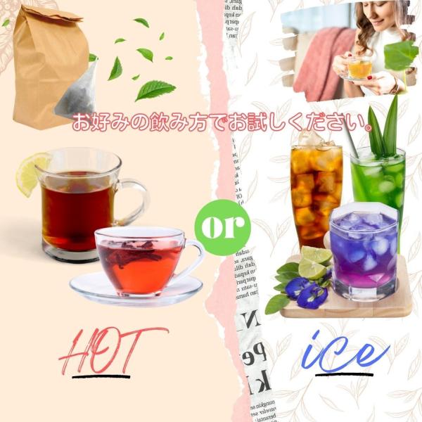 ※注意:バタフライピー、ローゼルティーは、子宮収縮作用がある為、妊娠中・生理中の方は飲用を控えてください。また凝固薬を服用の方も、血液サラサラ効果があることから、飲用をおやめ下さい。