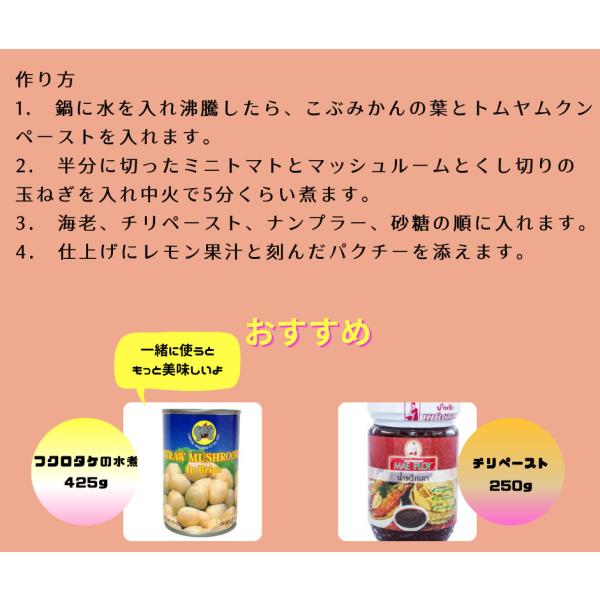 ●原材料:大豆油、レモングラス、唐辛子パウダー、タマリンドペースト、ニンニク、ナンキョウ、ライム果汁、アミノ酸、クエン酸