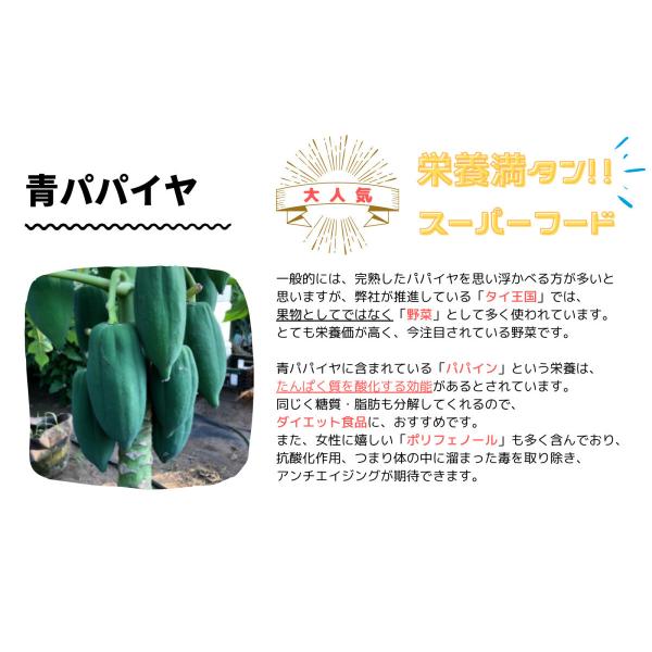 ●原材料:パパイヤ(国産)タマネギ、頂天唐辛子、加糖ブドウ糖、醸造酢(りんごを含む)、砂糖、酸味料、調味料(アミノ酸等)